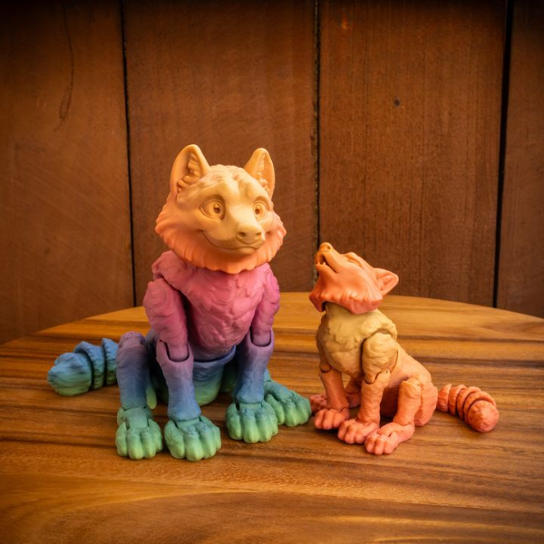 This articulated wolf figure is a detailed and poseable design, perfect as a fidget toy, collectible, or display piece. 3D printed in multicolor, it offers smooth movement and eye-catching style.